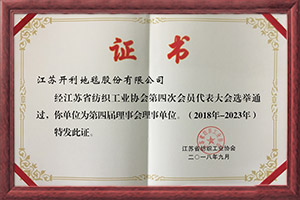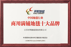 公司嚴(yán)格按照國(guó)際環(huán)保及等級(jí)要求,將“綠色、環(huán)保”理念貫穿到整個(gè)產(chǎn)品制造的全過(guò)程,生產(chǎn)流程堅(jiān)持按照ISO9001:2015質(zhì)量管理體系、ISO14001:2015環(huán)境管理體系進(jìn)行管理營(yíng)運(yùn)。公司擁有中國(guó)環(huán)保地毯認(rèn)證書(shū)、國(guó)際環(huán)保地毯認(rèn)證書(shū)和美國(guó)CRI+PLUS室內(nèi)空氣質(zhì)量認(rèn)證書(shū);2012年開(kāi)利地毯被國(guó)家文化部、商務(wù)部等六部委授予“國(guó)家文化產(chǎn)業(yè)出口重點(diǎn)企業(yè)”稱號(hào); 2014年11月開(kāi)利地毯通過(guò)了全球權(quán)威的認(rèn)證機(jī)構(gòu)挪威船級(jí)社(DNV?GL)認(rèn)證并獲得證書(shū);2016年3月開(kāi)利地毯獲得由歐洲權(quán)威認(rèn)證機(jī)構(gòu) Dedal 頒發(fā)的歐盟CE證書(shū);2016年12月參與發(fā)起成立中國(guó)紡織國(guó)際產(chǎn)能合作企業(yè)聯(lián)盟。