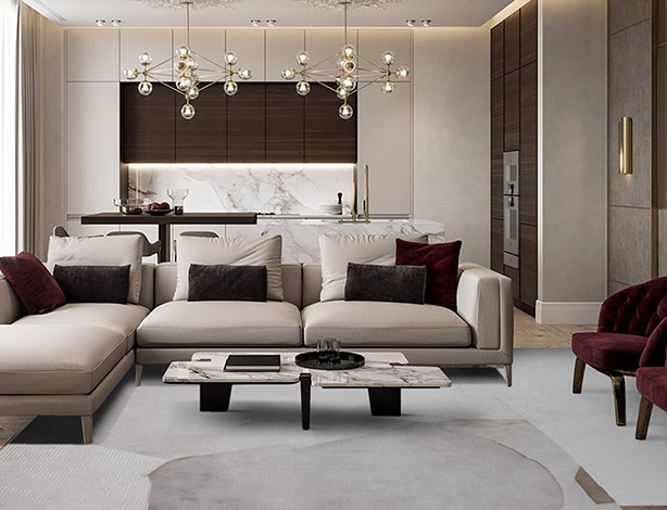 精美折邊、編織底背,現(xiàn)代裝修風(fēng)格,用于客廳、臥室、公區(qū)等。